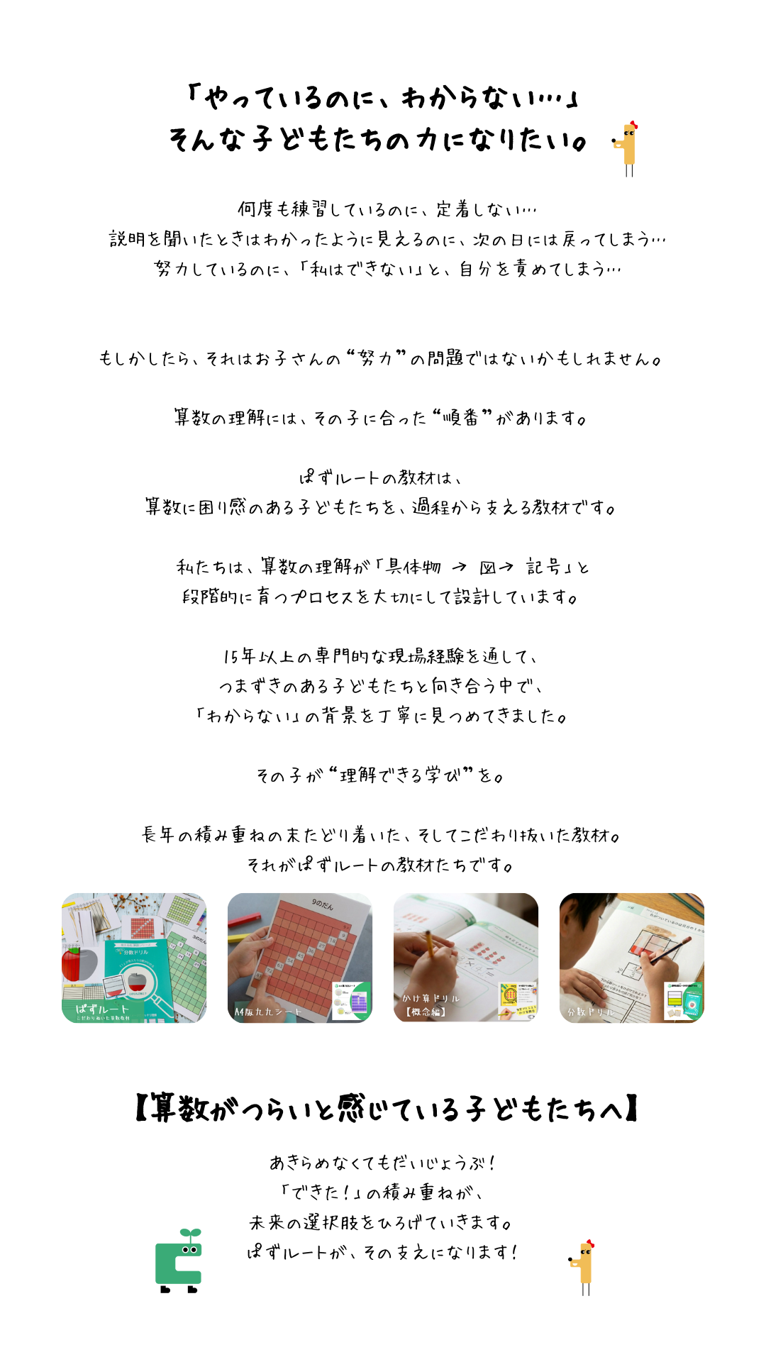 発達障害・学習障害の子どもにも対応の算数教材。視覚支援×スモールステップで算数の理解をサポートする教材です。ADHD、ASD、学習障害、それぞれの特徴に合う支援が実現しやすい教材をご利用ください。